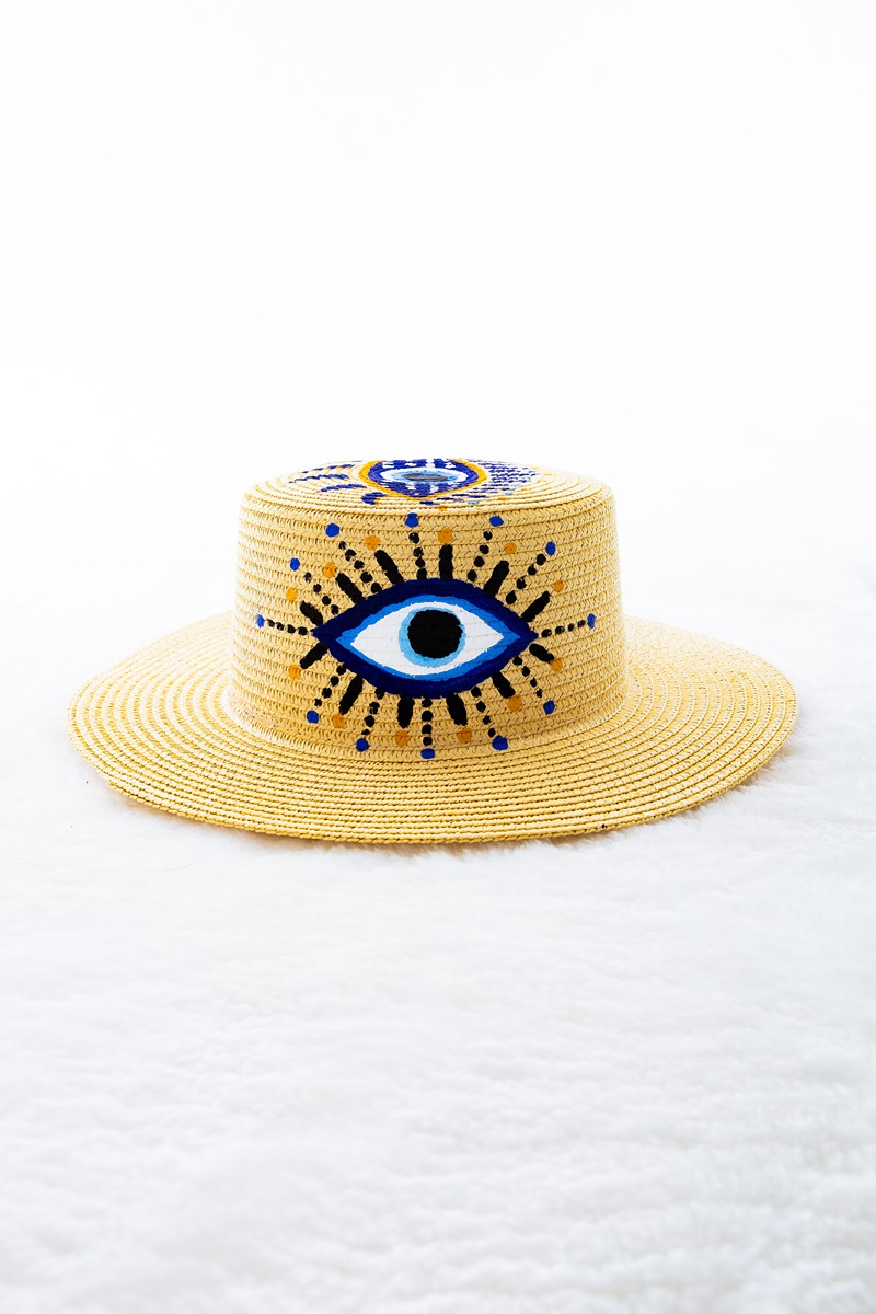 Athena’s Charm Collection named after the Greek goddess of wisdom and protection, the Athena’s Charm Collection combines sophistication with meaningful symbolism. Hand-painted by a skilled Colombian artist and designed by Cristina Mar, these hats are crafted to protect against jealousy and envy. The ancient symbolism of the Evil Eye merges with modern artistry, creating a statement of positivity and resilience. Radiating good vibes, they offer protection wherever you go.